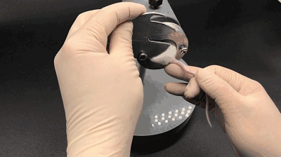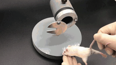第一步:打開尾蓋,提起小鼠尾巴,讓動(dòng)物頭對(duì)準(zhǔn)鼠筒口并使其本能的爬入固定器內(nèi);