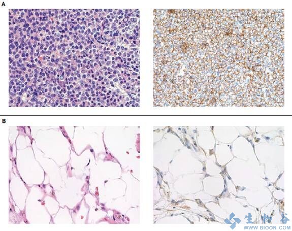 10例患者,包括現(xiàn)在所述的這例患者,到目前為止都已經(jīng)接受了治療(詳見附錄中表S1,NEJM.org)。10例中6例仍保持疾病無進展。僅有1例患者出現(xiàn)了CTL019相關(guān)性1級細胞因子釋放綜合征,1例因自體移植物抗宿主反應引發(fā)的3級小腸結(jié)腸炎。